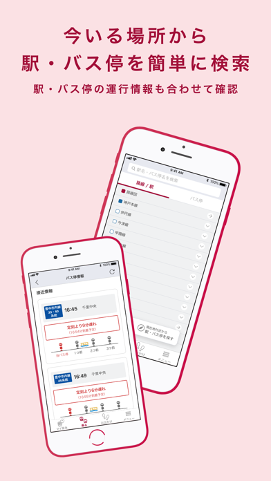 - 電車やバスの走行位置・遅延情報をリアルタイム確認。急なトラブルも安心