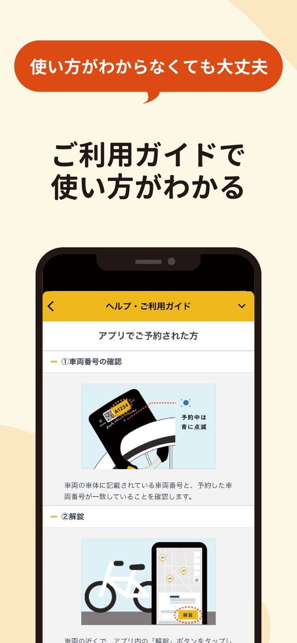 利用開始も返却も、アプリの指示に従うだけで簡単。都市部であればステーションも多く、気軽に自転車の機動力を活用できます。