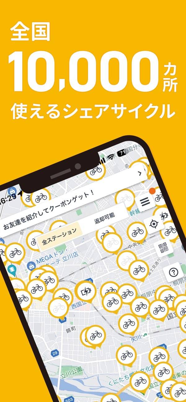 私は自転車通勤男なんですが、夏は暑くて自転車で出社ができない!そんなときに私を救ってくれたのがシェアサイクルです。暑い出社時間は電車、涼しくなった帰宅時はシェアサイクルと、自転車に乗ることができてるんです。会社は東京、家は神奈川。県をまたげるのもこのアプリの良さですね。ほぼ毎日、東京から神奈川に自転車を運んでいます。あと3年くらいしたら東京から自転車なくなります。神奈川が自転車だらけになります。\nそしてこのアプリの良さはポートが多いこと。けっこう、どこいくにも使えていい!\n一点、難点なのはポートが埋まるとそこには止められないから、朝と夜でけっこう使う人の流れに影響受けちゃうこと。その点、DOCOMOがやってたのは停め放題っていう良さはあったかも。