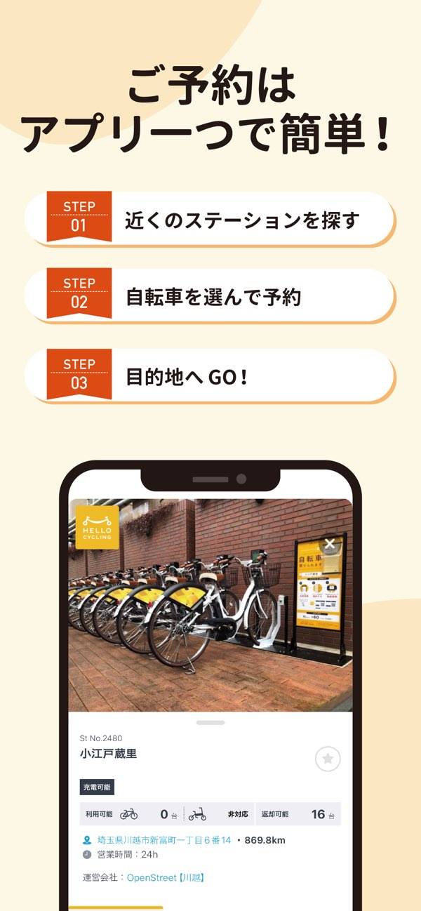 利用開始も返却も、アプリの指示に従うだけで簡単。都市部であればステーションも多く、気軽に自転車の機動力を活用できます。