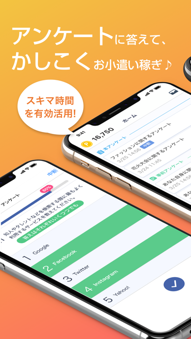 スマホ専用のアンケートで、効率よくお小遣い稼ぎができます。移動中や空き時間を無駄にせず、ストレスなくアンケートに答えられます。また、テキストチャット形式のインタビューに参加することで、一度に大量のポイントを獲得するチャンス。