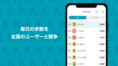 居住地や年代別の1日の歩数ランキングを表示する機能があります。全国のユーザーや同地域、同年代のユーザーと自分の歩数を比較。健康活動のモチベーションを上げられます。歩く楽しさや競争意識が高まり、健康促進につながります。