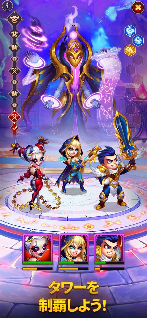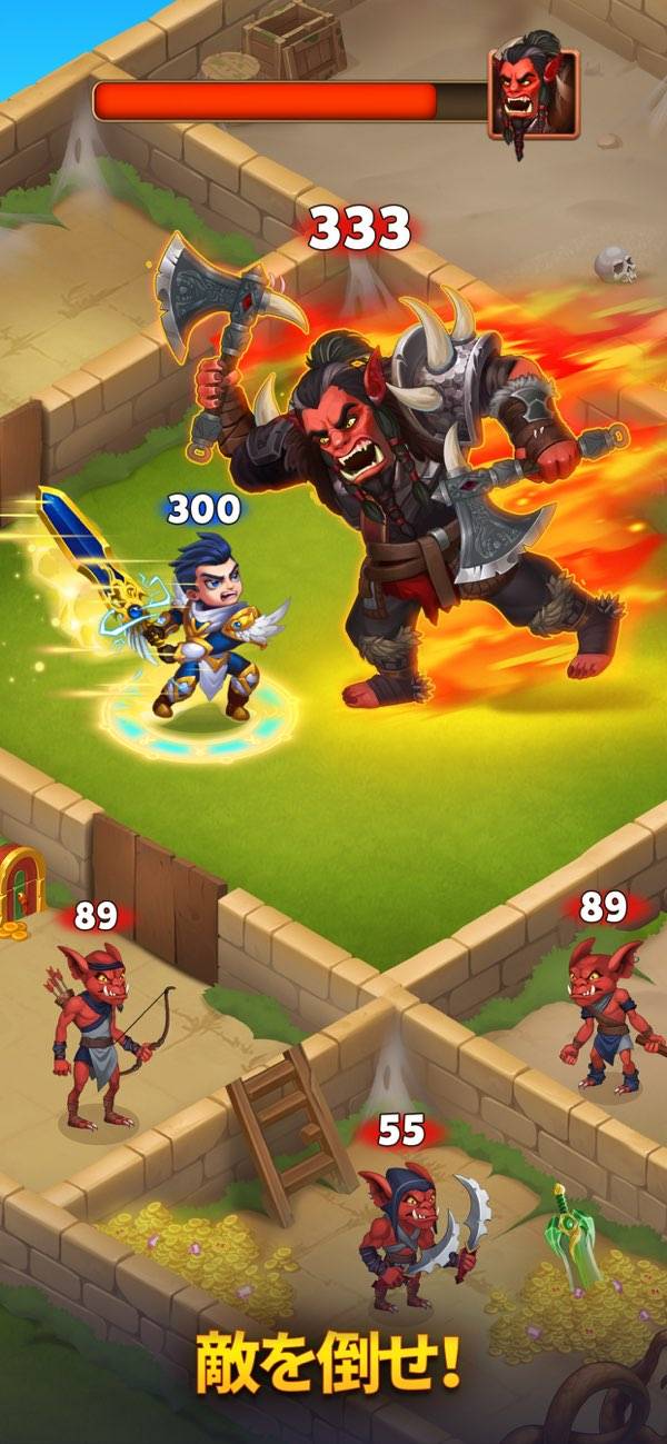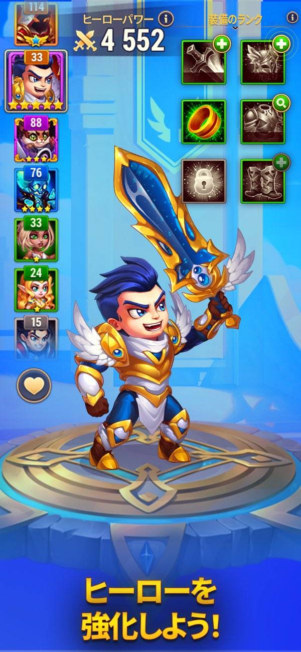 - ヒーローたちを集め、侵略された土地を解放していくオート進行のRPG