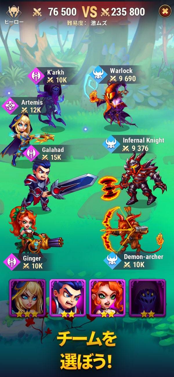 ▲アタッカーやタンクなど、ヒーローのタイプや持つスキルは様々。バランスよく組み合わせよう。