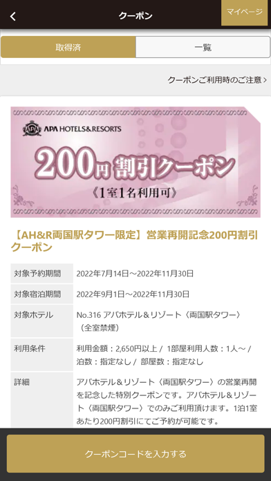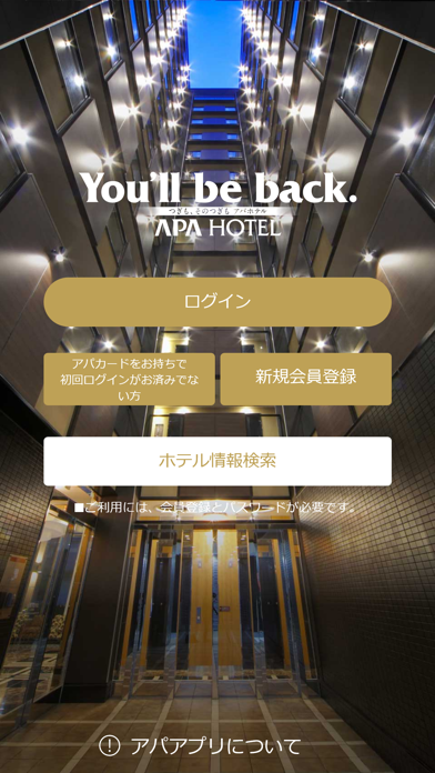全国で展開されているホテルチェーン「アパホテル」の公式アプリ。ホテル検索以外のサービスはアパカード会員でないと利用できないのが難点ですが、その分会員にはおいしいアプリとなっています。