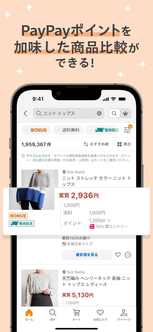 楽天やAmazonで見つからない商品や、見つかっても高い商品が、こちらでお手頃な価格で見つかることがたまにあるので、他のショッピングアプリと使い分けています。ソフトバンクやワイモバイルなどのキャリアを使っている人や、LYPプレミアムに加入している人には特にお勧めです。