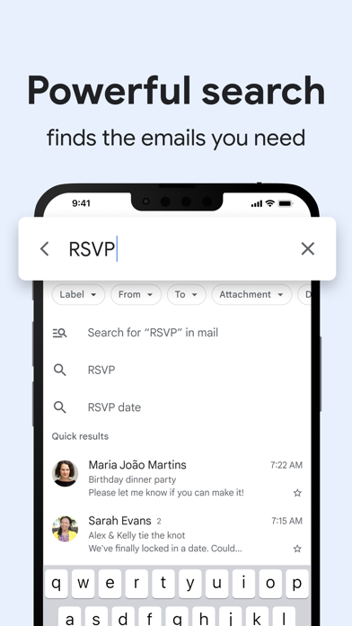 メールサービス大手『Gmail』のアプリ版。ビジネスツールとしてはもちろん、プライベートでもメインのメーラーとして使っている人は多いでしょう。複数アカウントを簡単に使い分けられ、PC版から重要な機能を抽出したシンプルで洗練された作りが特徴です。