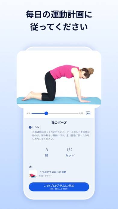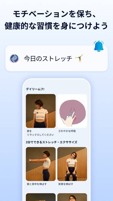 理学療法を用いて、体の不調を改善していくためのアプリです。症状をヒアリングして、1人ひとりに合わせたエクササイズを提案。継続して行うことで体を健康な状態へと導きます。
