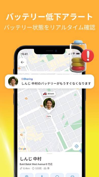 バッテリー残量の通知機能や、端末を紛失した場合に使える「携帯を探す」機能も搭載。スマートフォンのバッテリー切れや紛失によって、いざというときに使えなくなるリスクにも配慮されています。スマートフォンやタブレットがあれば誰でも利用できるサービスだからこそ、こうした機能の充実は安心材料のひとつです。