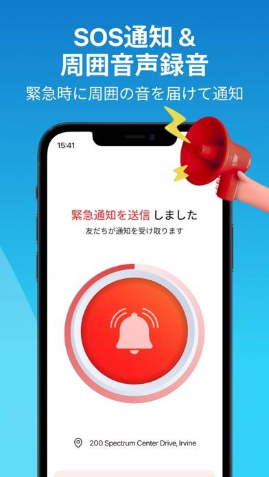 アプリ操作が難しい場面では、端末を振るだけで作動するパニックアラートが便利。信頼できる連絡先に即座に通知を送り、緊急時の支援を求められます。