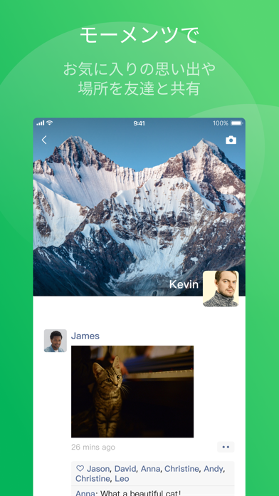 最大15人まで同時に参加できるグループビデオ通話や、クリアな音声通話が利用できます。国際電話もWeChat Out機能を使えば、低価格で通話可能。モバイル通信やWi-Fi環境さえあれば、海外のオフィスやホテルからも問題なく使えます。移動中の急な打ち合わせもスムーズに対応できます。