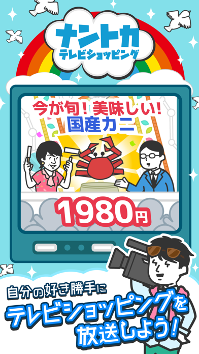 これは楽しい!商品に合った今日のゲストやスタジオを選んでオンエアー!商品紹介のフレーズを選んで、ルーレットでパフォーマンスを決めて、購入者のVTRを選んで、あとはオマケを選ぶだけ。貯まったお金で新しい商品やゲストなどを増やせるので、収集要素も有り。暇つぶしに丁度良いアプリです。