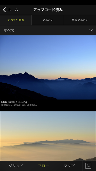 - 3種類のビュー(グリッド・フロー・マップ)で写真を見返すことが可能