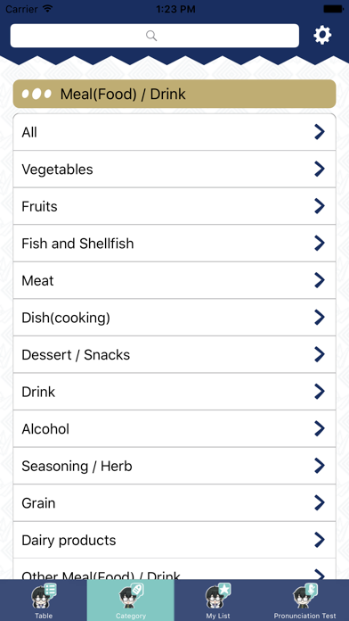 - 食べ物、ファッションなどのカテゴリ分けで、単語が探しやすい