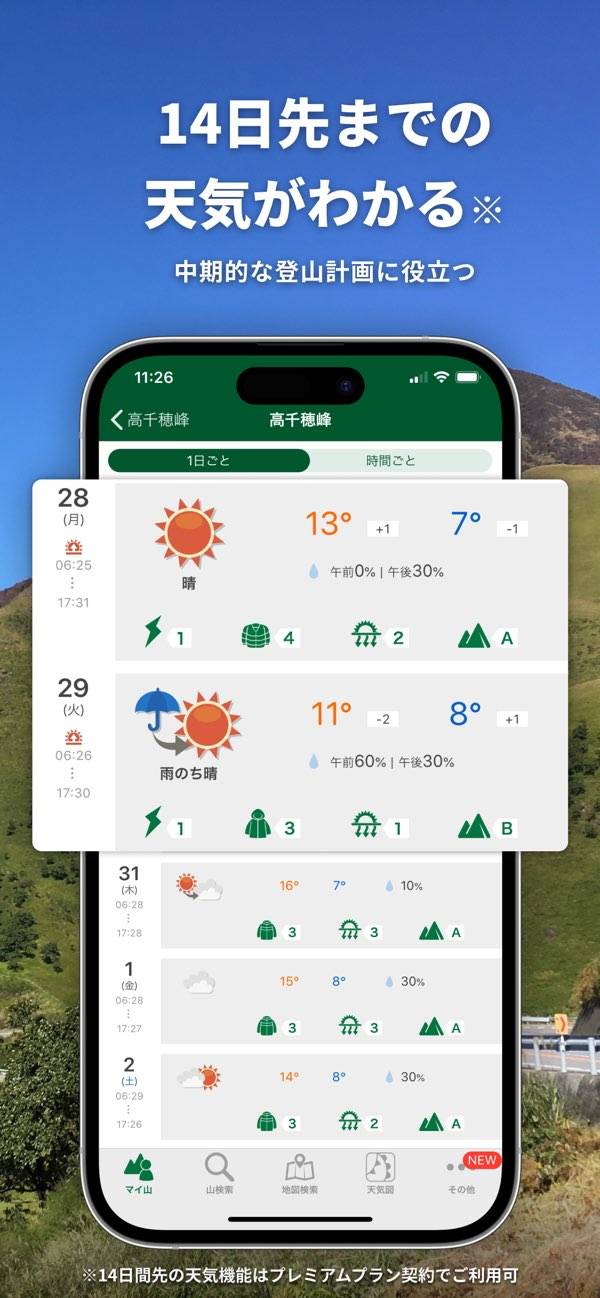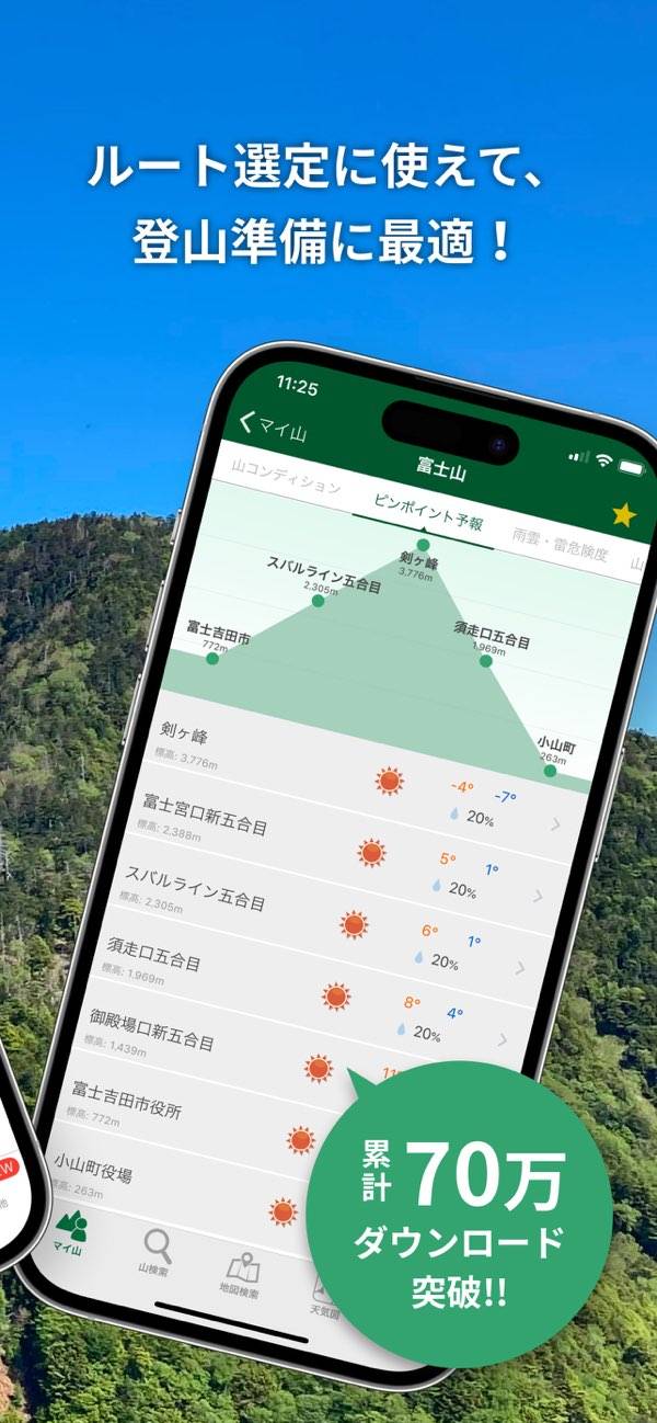 - 山頂・登山口・ふもと。それぞれの天気をピンポイントで教えてくれる