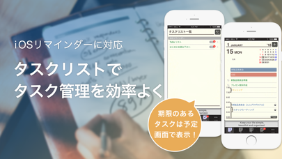 プリセットのカレンダーアプリに記載されている予定を、そのまま引き継げます。自動で予定が反映されるので、一つひとつ入力し直す手間がかかりません。さらに、本アプリでは予定だけでなくタスクもカレンダー上に表示可能。予定とタスク管理を一体化できます。