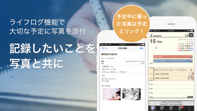 写真をカレンダーや予定に表示させることもできます。また、スクリーンショットの表示も可能。ビジネスだけでなく、プライベートの思い出の記録にも活用できますね。視覚的に特定の日の活動を振り返ることができるので、思い出をより鮮明に残せます。