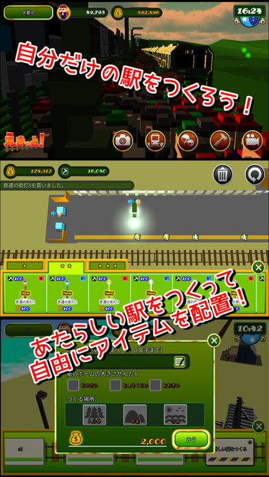 好きな場所に改札、自販機、飲食店などの施設を置いてオリジナルの駅が作れます。電車が行き交う様子や多くのお客さんが乗り降りする姿を、ずっと眺めていられるゲーム。鉄道ファンの方や駅マニアの方におすすめです。