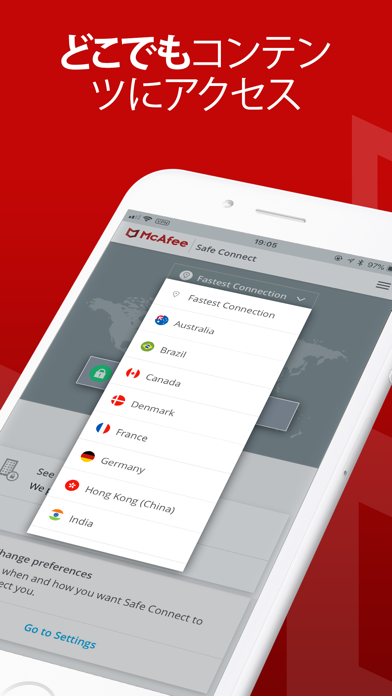 パソコンのセキュリティでおなじみの『McAfee』が提供するVPNアプリです。ワンタップでVPNのON / OFFを切り替えられ、通信データを保護してくれます。