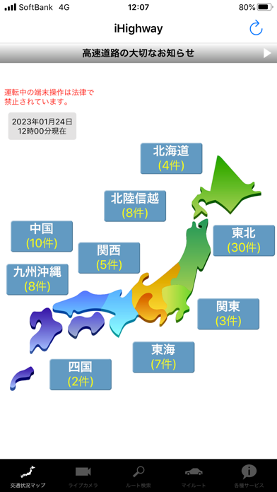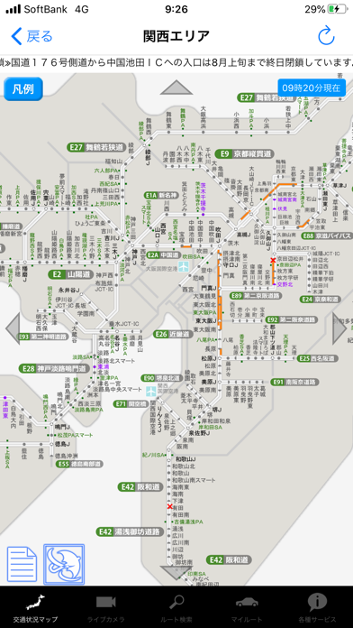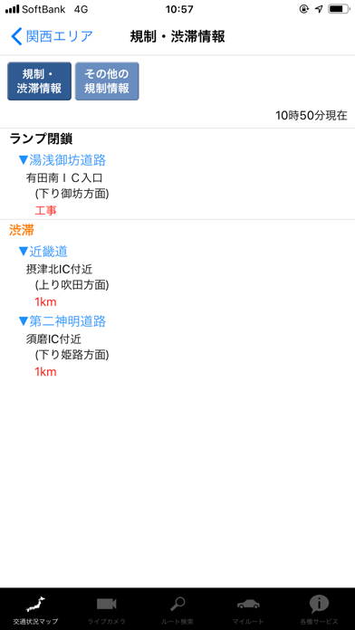 特に気に入っているのがライブカメラ機能です。サービスエリア、パーキングエリアや道路の混み具合がリアルタイムの画像でわかるので帰省シーズンに大活躍です。もちろん渋滞や規制情報も見られますよ。