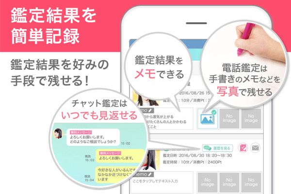 鑑定履歴がずっと残せるのと無料で送れるメッセージがあるのが嬉しい。あと良い先生がたくさんいるから好き。