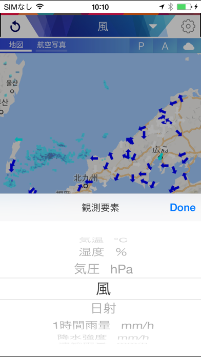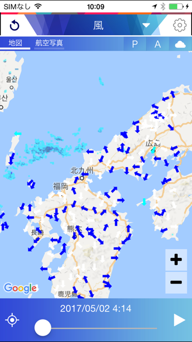 全国の気象情報が地図と航空写真で見られます。ズームイン・アウトなどの機能はありますが、全体的にシンプルな作りとなっています。使い方に悩むことはあまり無いでしょう。