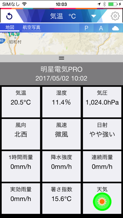 - 表示を切り替えて、風向き、日射などの情報が幅広く見られる