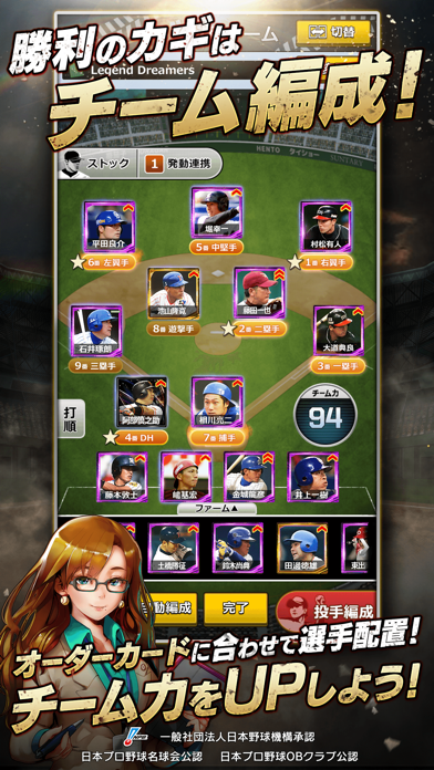 守備位置やオーダーを決めるのが監督の最大の仕事です。1950年以降のスラッガーたちを自分好みに編成できるのが魅力。チーム力を向上させると勝率UPにも繋がるでしょう。