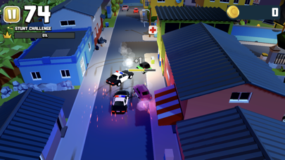 狭い街で、パトカーとカーチェイスを繰り広げるドライブアクション