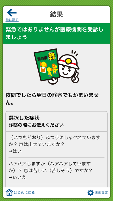 - いくつかの質問に答えると、症状の緊急度を判定