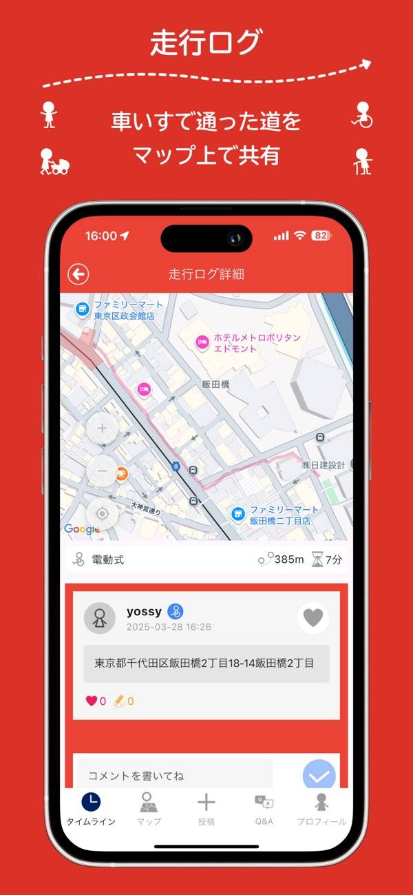 このアプリでは、自分が通った道や訪れたスポットのバリアフリー情報を投稿可能。自分の経験がほかのユーザーの「行きたい!」につながり、同じ状況の人に役立つ情報を提供できます。自分の経験が他人の助けとなり、達成感を感じることもできるでしょう。