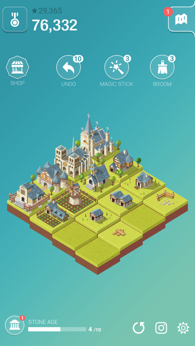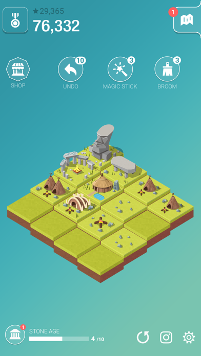 文明を発展させる2048系パズルゲーム!ステージをスライドさせ、同じブロックを合体させるとレベルアップした建物に変化します。最初は石ころから始まり、繋げていくとどんどん建物らしいものができるのが面白い!どこまで文明が進化するのか気になって夢中で遊んでしまいますよ!