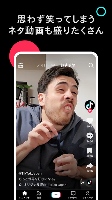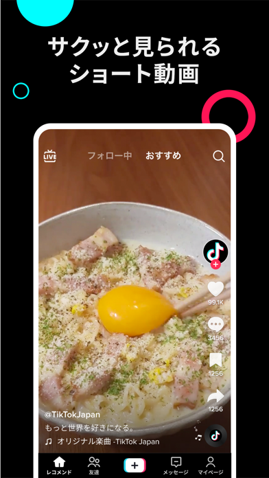 この前、友だちとふざけて撮った動画をアップしたら、投稿までめっちゃ簡単だったし、想像以上にいいねがついてびっくりした。エフェクトも種類が多くて盛れるし、まぢ神アプリ。
