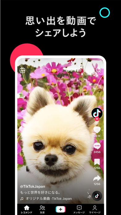 この前、友だちとふざけて撮った動画をアップしたら、投稿までめっちゃ簡単だったし、想像以上にいいねがついてびっくりした。エフェクトも種類が多くて盛れるし、まぢ神アプリ。
