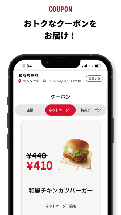 ネット注文や店舗検索ができる便利なケンタッキーフライドチキン公式アプリ。お得に購入できるクーポンも配信されているので、インストールして損はないでしょう。ネットオーダー機能を活用すると、持ち帰りや自宅への配達にも対応してくれます。