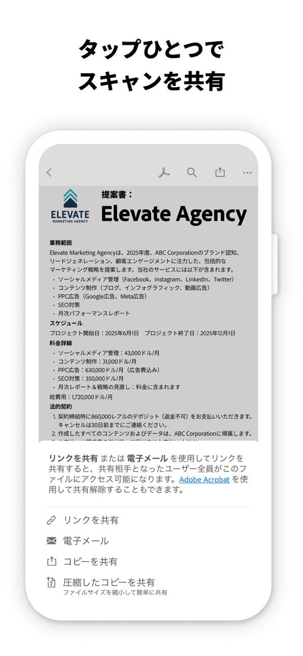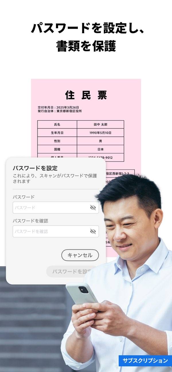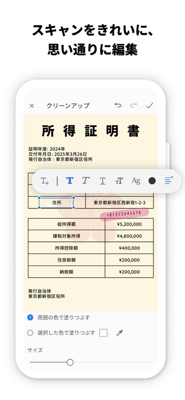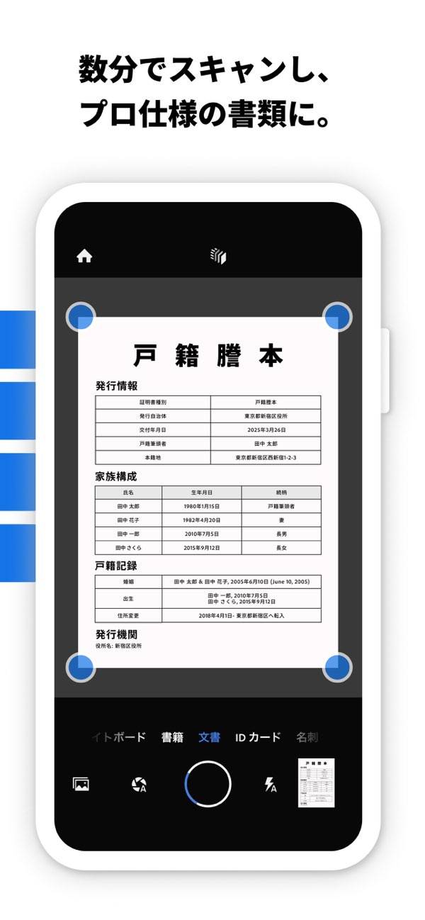 - Adobe提供の文書スキャナアプリ。紙の文書をスキャンしてPDF化