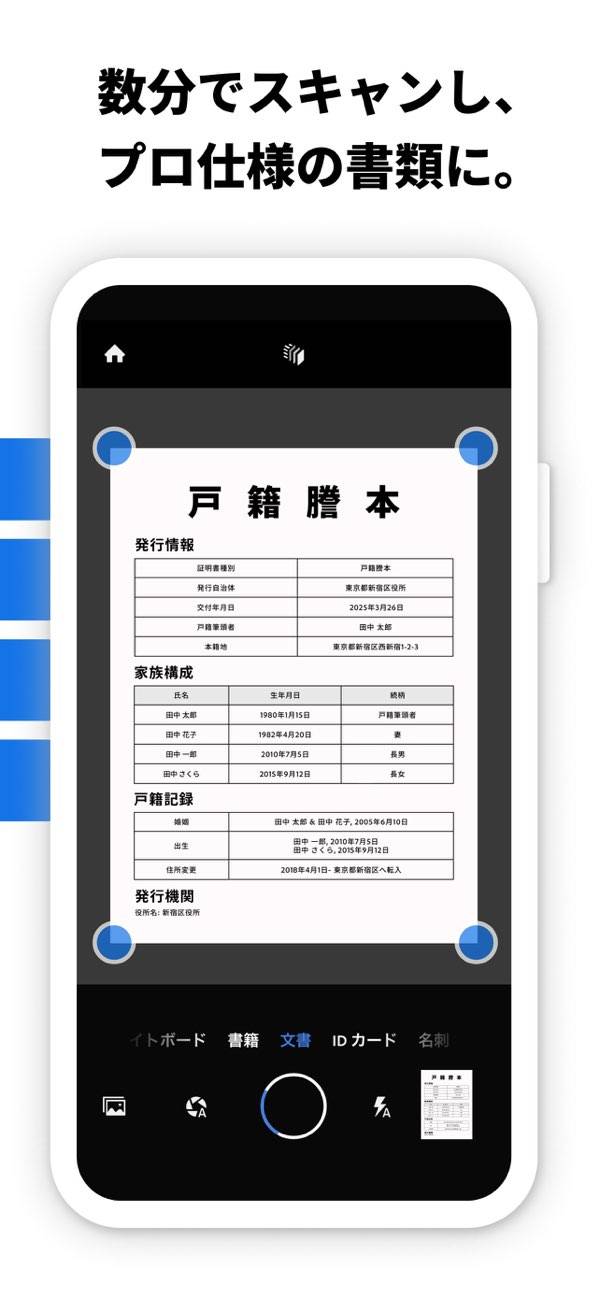 - Adobe提供の文書スキャナアプリ。紙の文書をスキャンしてPDF化