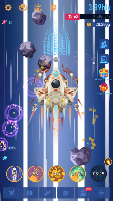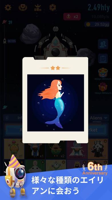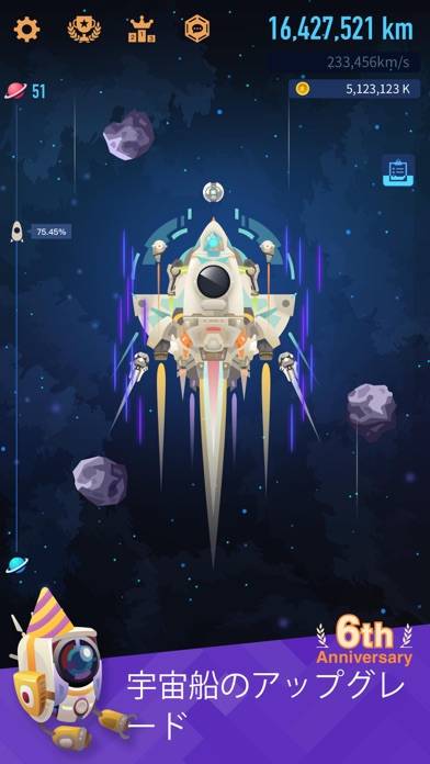 - ロケットで美しい宇宙を探索し、様々な惑星を巡るタップ放置ゲーム