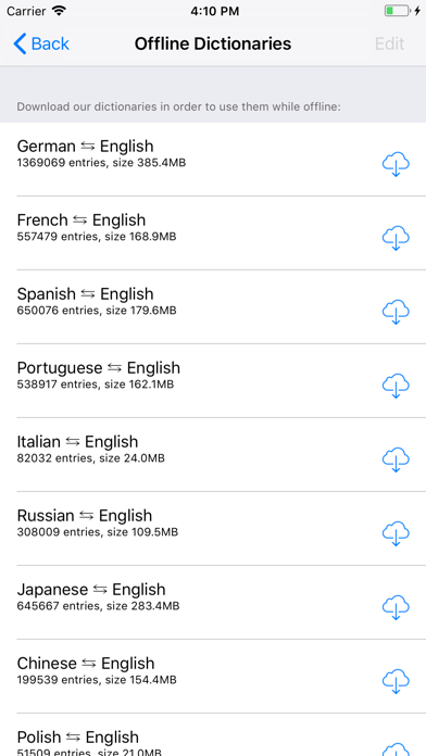 - 辞書データを端末にダウンロードしておけば、オフラインでも利用できる