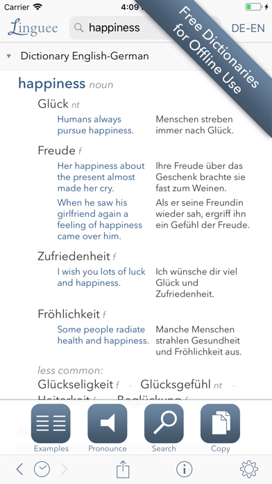 - 英語やドイツ語など多彩な言語で、単語の意味を検索できる辞書アプリ
