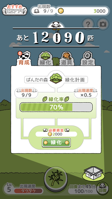 育成するとパンダを集めたときに得られるコインの量がアップします。またコインを消費すると新種のパンダが増えていきます。コインが貯まったら積極的に活用するといいでしょう。