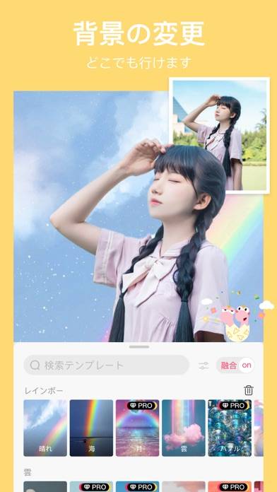 画像の背景を差し替えたり、被写体を切り抜いたりできる加工アプリ。さまざまなテンプレートが収録されており、お手軽に背景を変えてオシャレな画像に加工できます。有料プランに加入すれば、背景を透過してほかの写真と合成する素材も作れます。