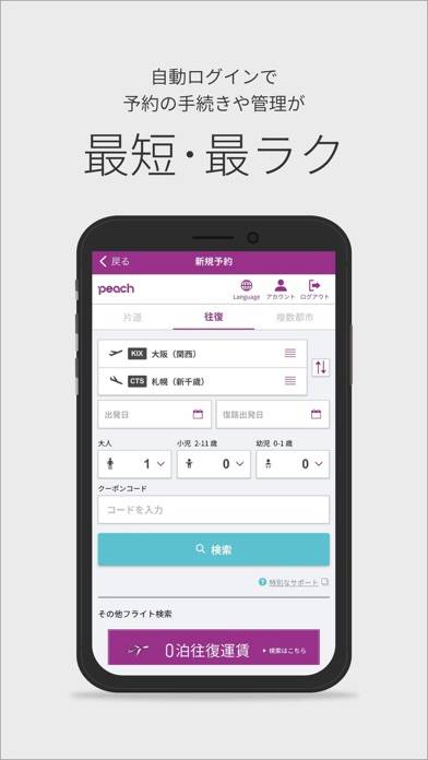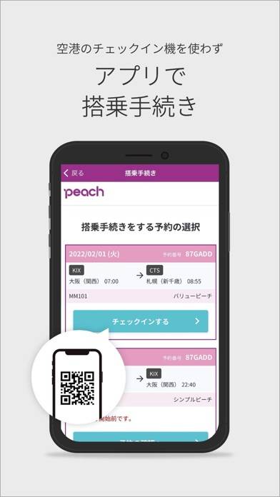 - 航空券を予約・管理し、手軽にPeachの飛行機を利用できるアプリ