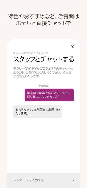 - 24時間ホテルのスタッフとチャットが可能。タオルなどのリクエストも