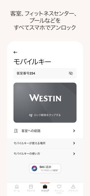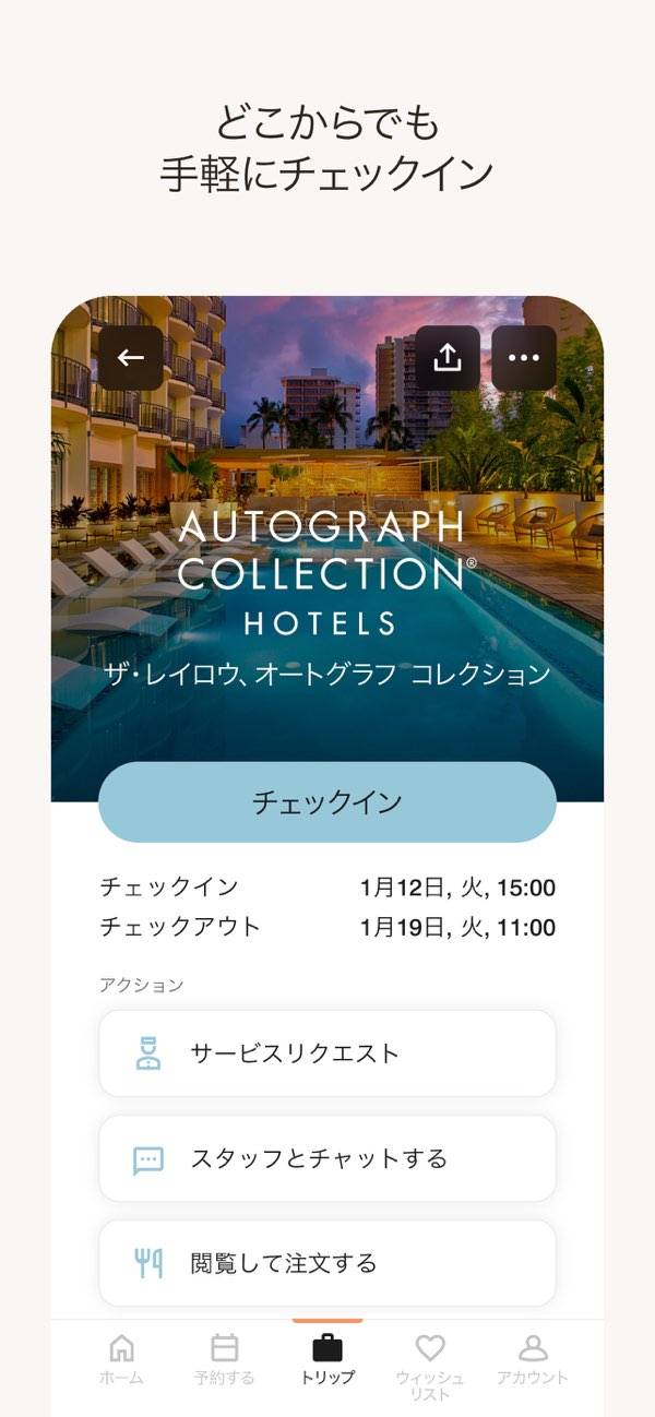 またモバイルチェックイン機能も搭載。到着の48時間前から利用でき、部屋の準備が完了したら通知を受け取ることもできますよ。