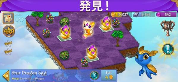 風で飛んできた苗やドラゴンを3つ以上マッチさせて進化させるマッチング系ゲーム。