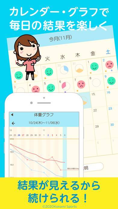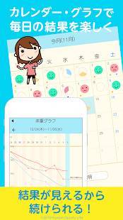 - 毎日の体重やカロリーの推移をグラフで記録。長期的に体重を管理できる