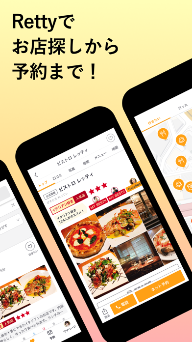 本アプリから飲食店へのネット、または電話予約ができます。各飲食店のページから「行きたい」アイコンをタップするとマイリストが作成され、いつでも予約がしやすくなるので便利。また本アプリからのネット予約で、PayPayポイントが貯まります。