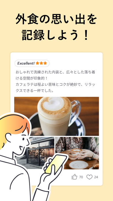 さまざまな飲食店に訪れた経験のある、グルメなユーザー達のレビューが見られます。もちろん自分でもレビューを投稿可能。行ったことのある飲食店を選び、「行った」というアイコンをタップすると投稿ができるようになります。