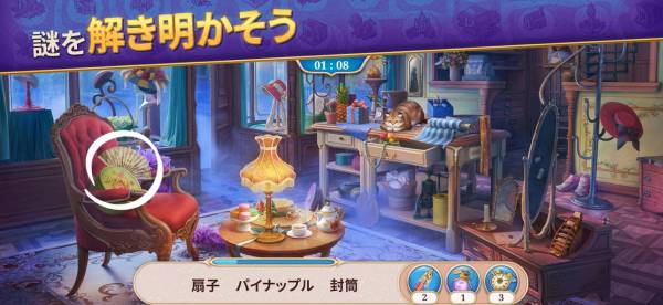 指定されたアイテムを制限時間内に探し出しましょう。アイテムを見つからないときは、ピンチアウトで拡大すれば見つかるかもしれません。同じステージに何度も挑戦することがありますが、探すアイテムやアイテムの配置場所は変わるので何度でも楽しめます。